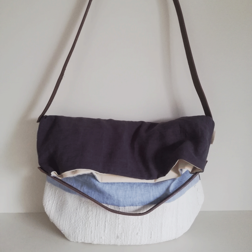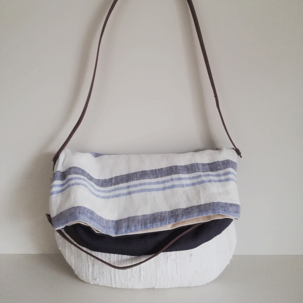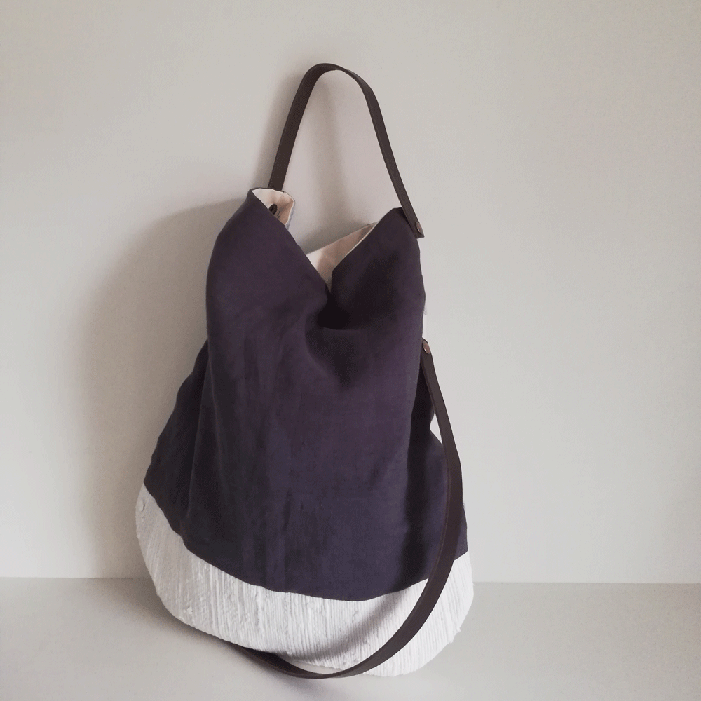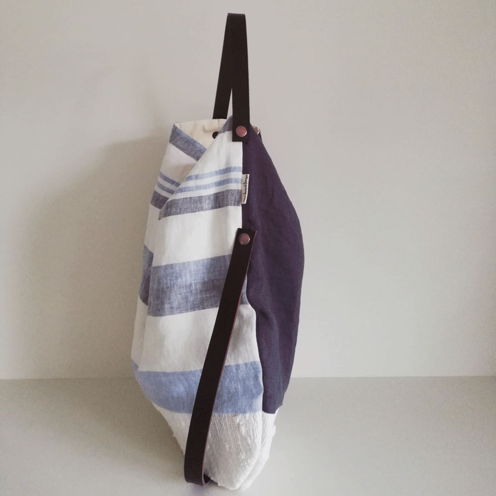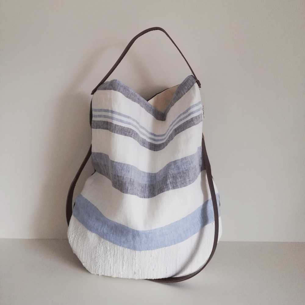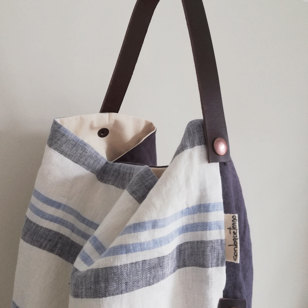 Bolso de lino diseñado a partir de tejidos reciclados.